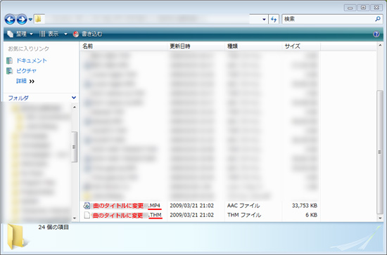 ファイルの名前を曲のタイトルに変更します。(MP4、THM両方)
