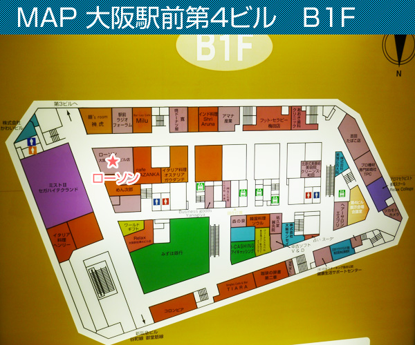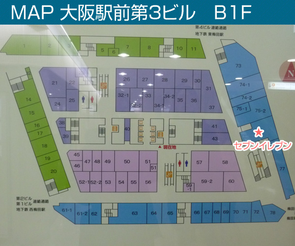 大阪駅前第2ビル地下2階にありますが、第3ビル地下1階にもあります。