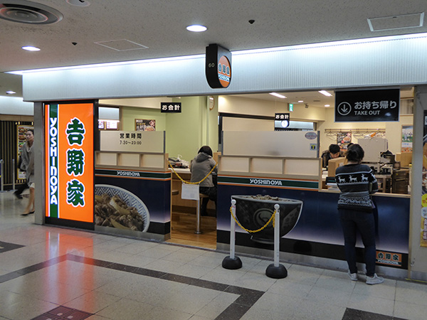 ちなみに駅ビル内で牛丼チェーンはここの「吉野家」だけになります。